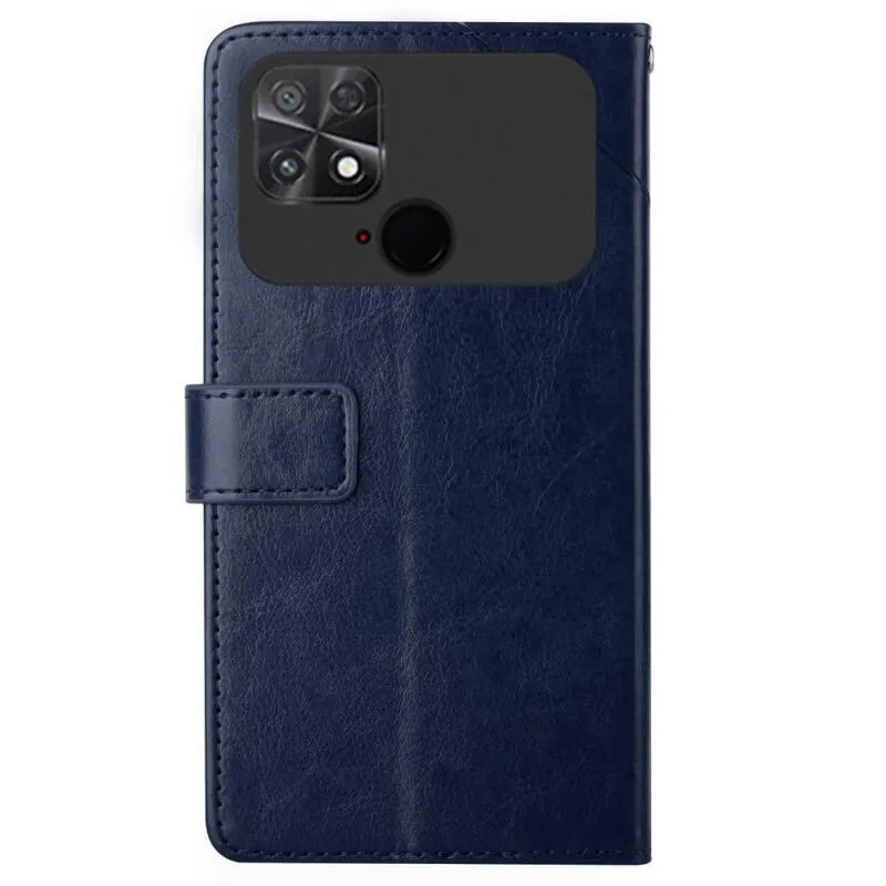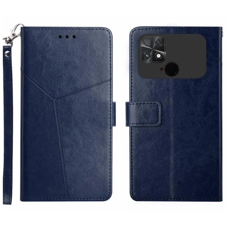 Y-Line PU bőr pénztárca tok a Xiaomi Poco C40 készülékhez - kék