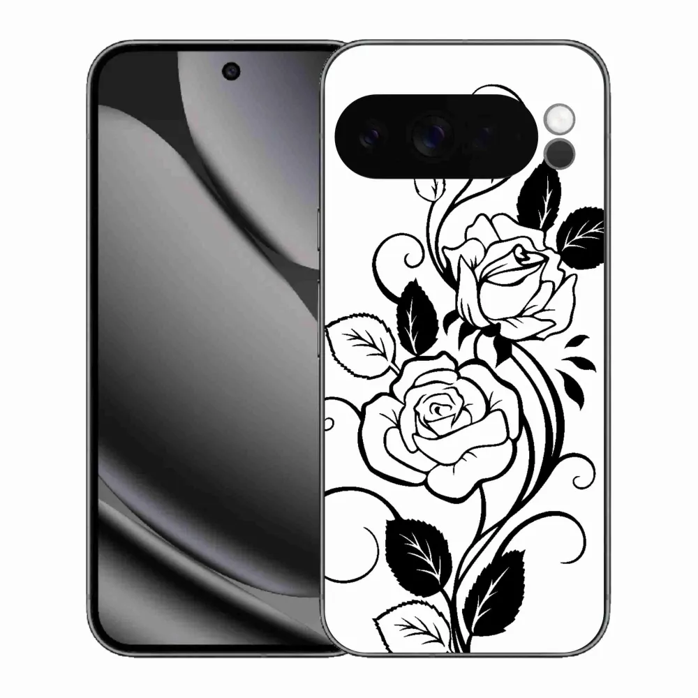 Rugalmas zselés tok mmCase a Google Pixel 10 Pro XL képével - fekete és fehér rózsa