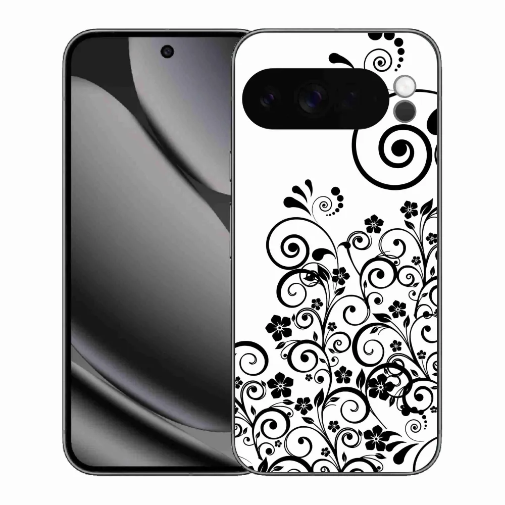 Rugalmas zselés tok mmCase a Google Pixel 10 Pro XL képével - fekete és fehér virágminták