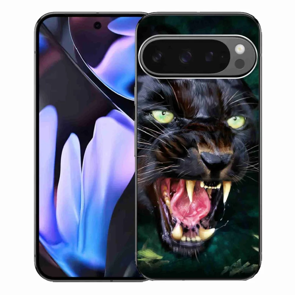 Rugalmas zselés tok mmCase a Google Pixel 9 Pro XL képével - dühös fekete párduc