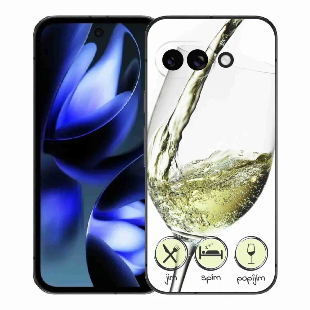 Rugalmas zselés tok mmCase a Google Pixel 9a képével - borospohár fehér