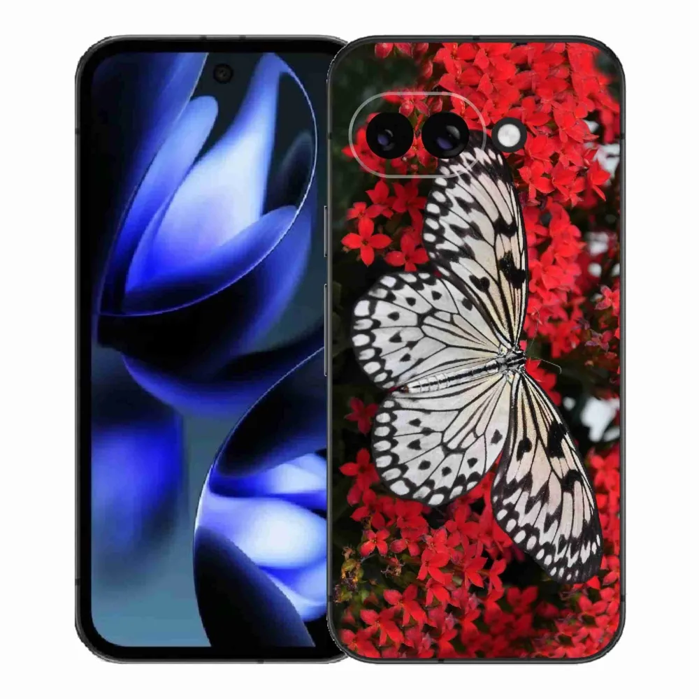 Rugalmas zselés tok mmCase a Google Pixel 9a képével - fekete-fehér pillangó 1