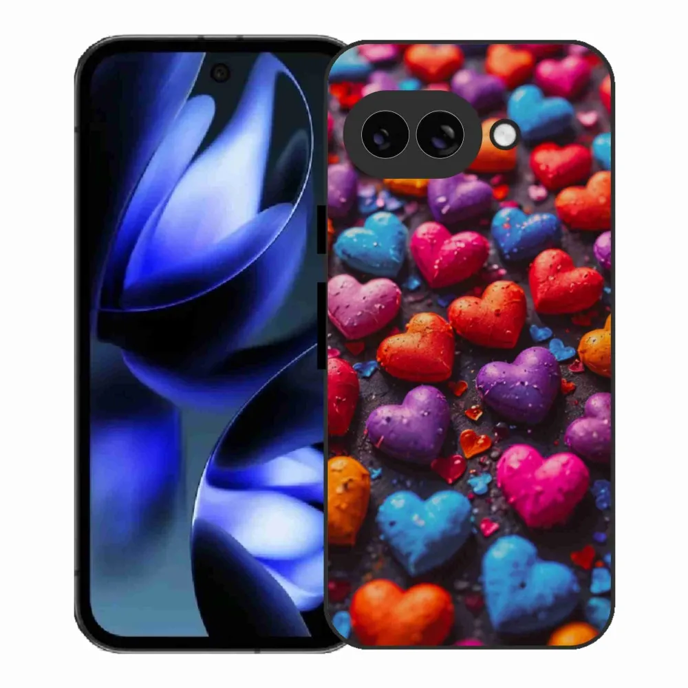 Rugalmas zselés tok mmCase a Google Pixel 9a képével - színes szívvel
