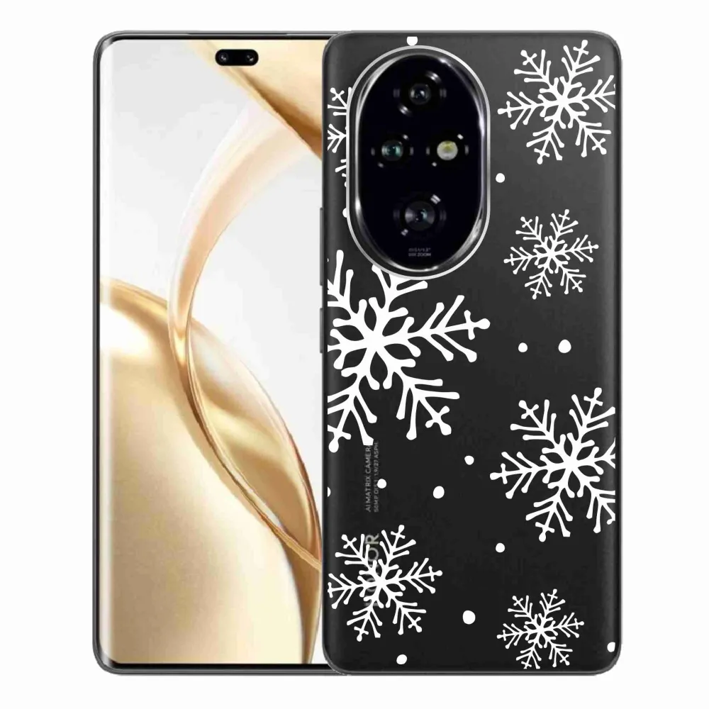 Rugalmas zselés tok mmCase képpel a Honor 200 Pro 5G számára - fehér hópelyhek átlátszó háttéren