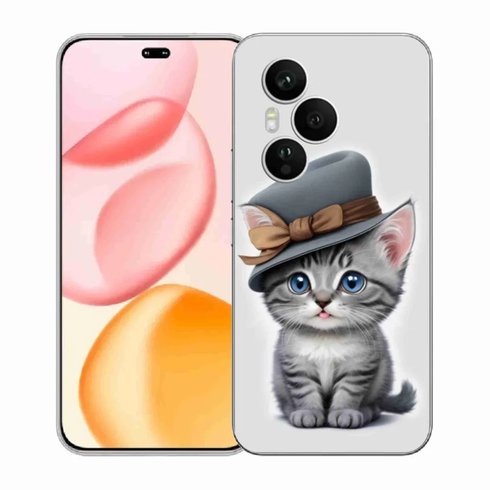 Rugalmas zselés tok mmCase képpel a Honor 400 Pro számára - cica sapkával