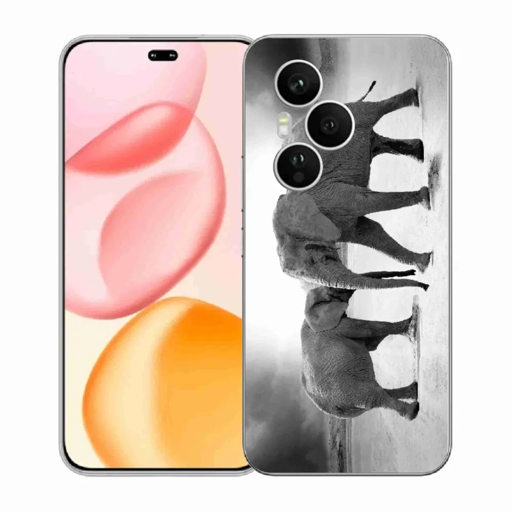 Rugalmas gél tok mmCase a Honor 400 Pro képével - fekete és fehér elefántok
