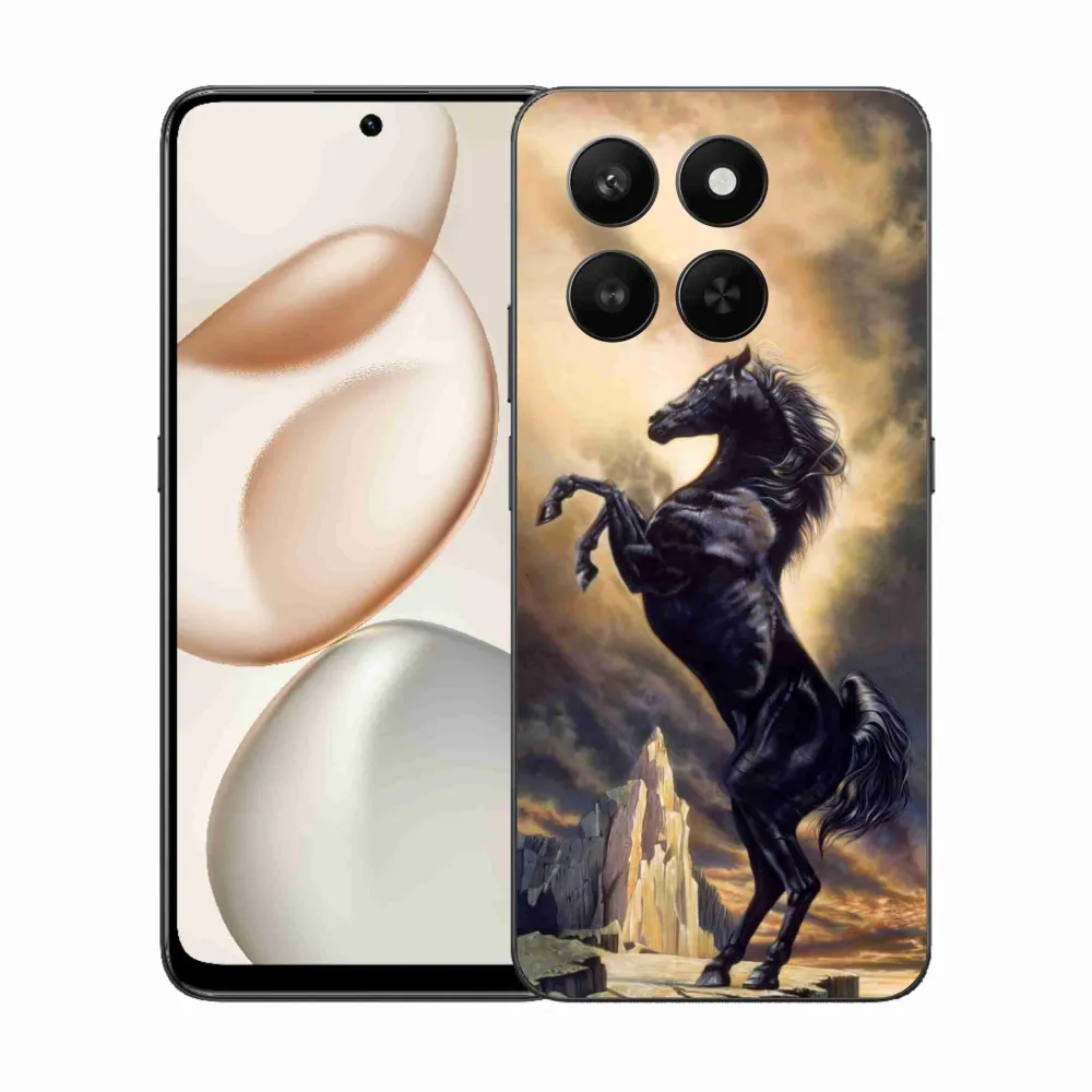 Rugalmas gél tok mmCase képpel a Honor 400 Smart 5G/4G/Honor X7d számára - fekete rajzfilm ló