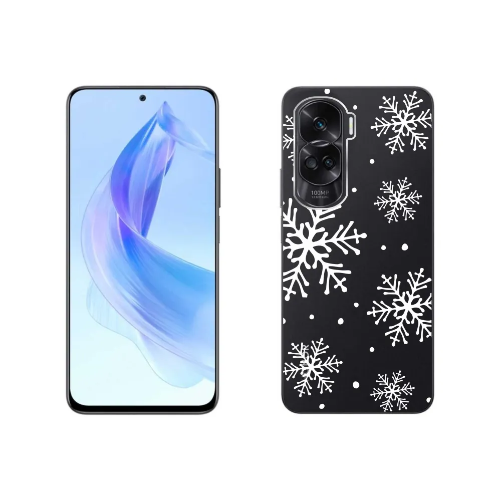Rugalmas zselés tok mmCase motívummal a Honor 90 Lite-on - fehér hópelyhek átlátszó háttéren