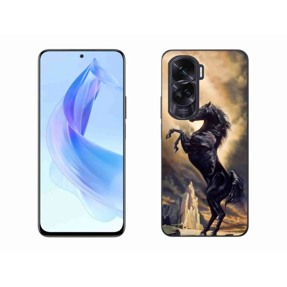 Zselés borítás mmCase a Honor 90 Lite készülékhez - fekete rajzfilm ló