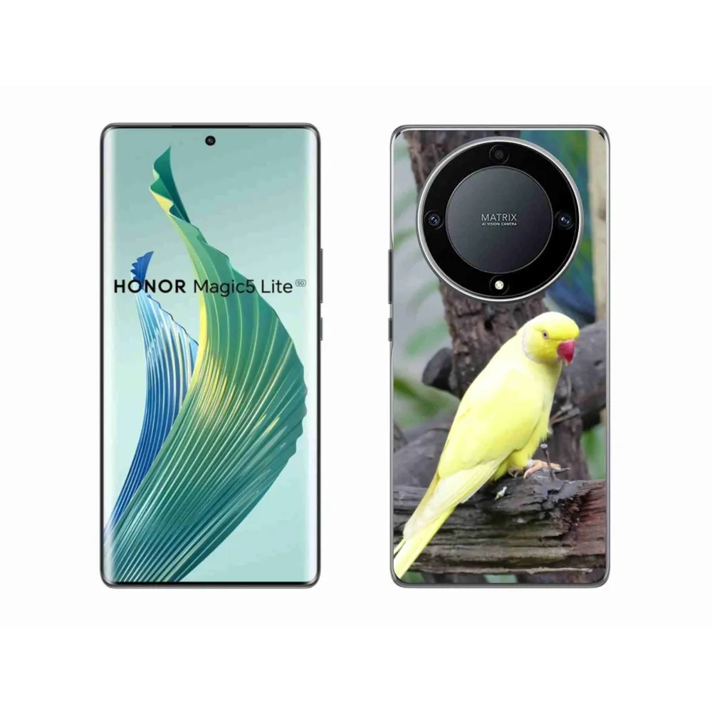 Rugalmas zselés tok mmCase a Honor Magic 5 Lite 5G képével - papagáj alexander sárga