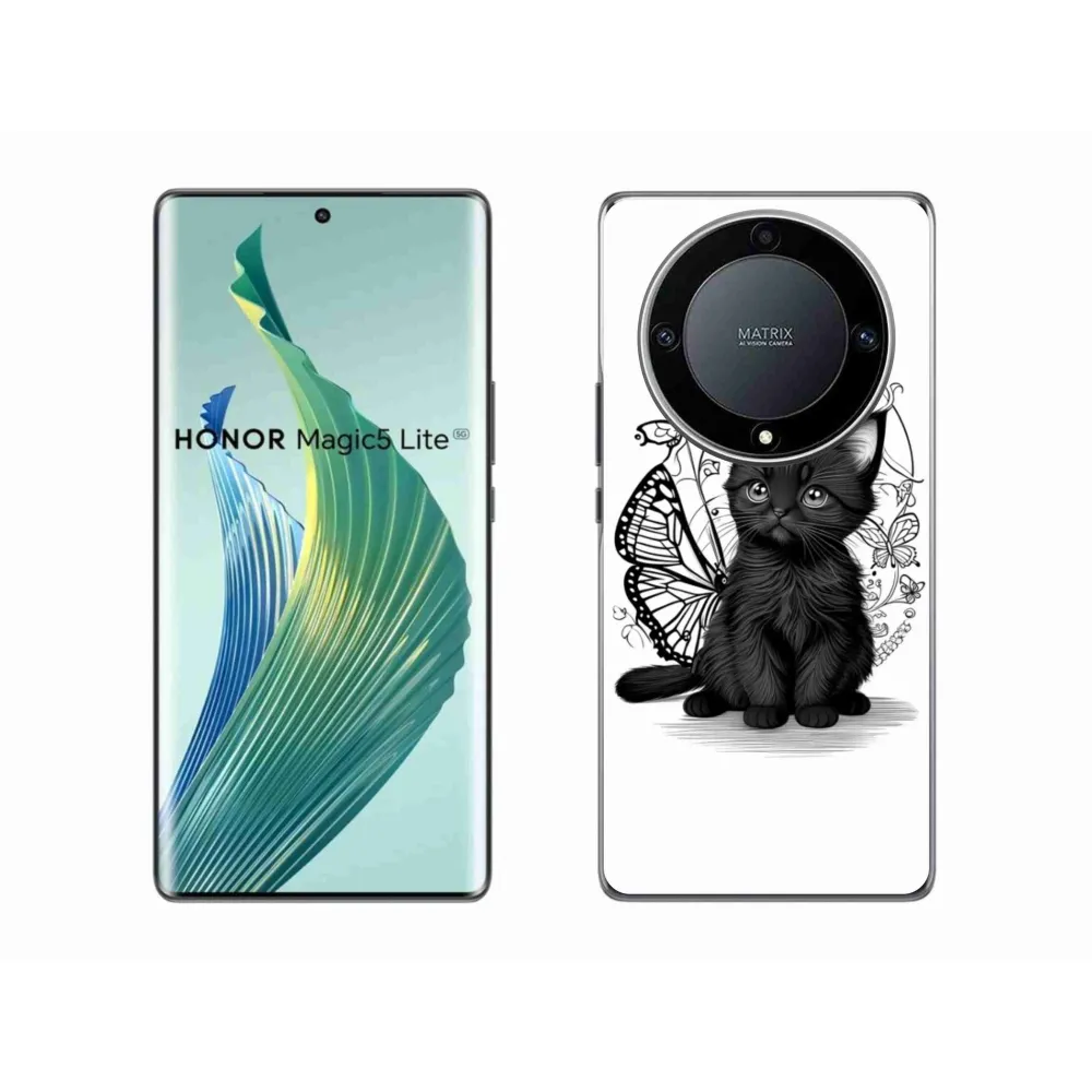 Zselés borítás mmCase a Honor Magic 5 Lite 5G számára - fekete cica