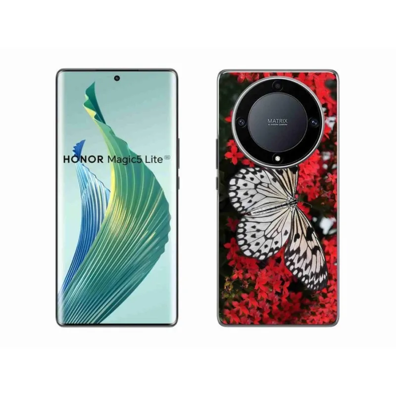 Zselés borítás mmCase a Honor Magic 5 Lite 5G számára - fekete-fehér pillangó 1