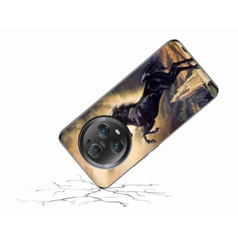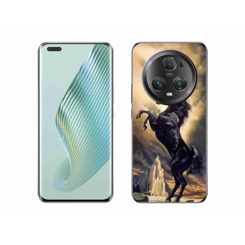 Zselés borítás mmCase a Honor Magic 5 Pro 5G számára - fekete rajzfilm ló