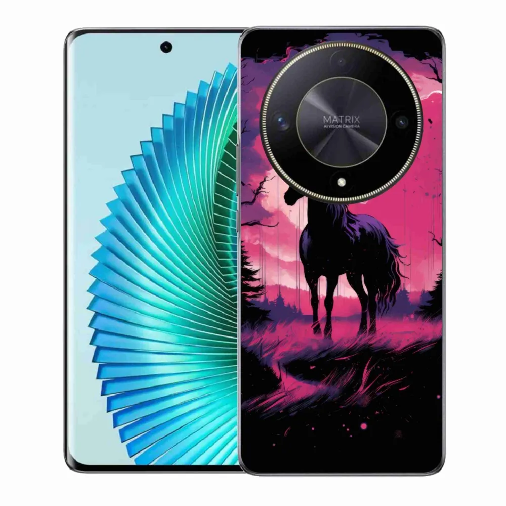 Rugalmas zselés tok mmCase a Honor Magic 6 Lite 5G képével - fekete rajzfilm ló 1