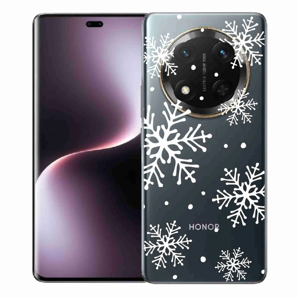 Rugalmas zselés tok mmCase a Honor Magic 7 Lite 5G képével - fehér hópelyhek átlátszó háttéren