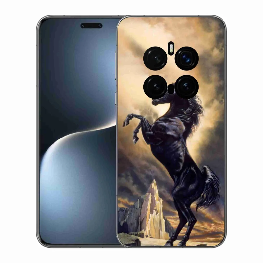 Rugalmas zselés tok mmCase a Honor Magic 7 Pro 5G képével - fekete rajzfilm ló