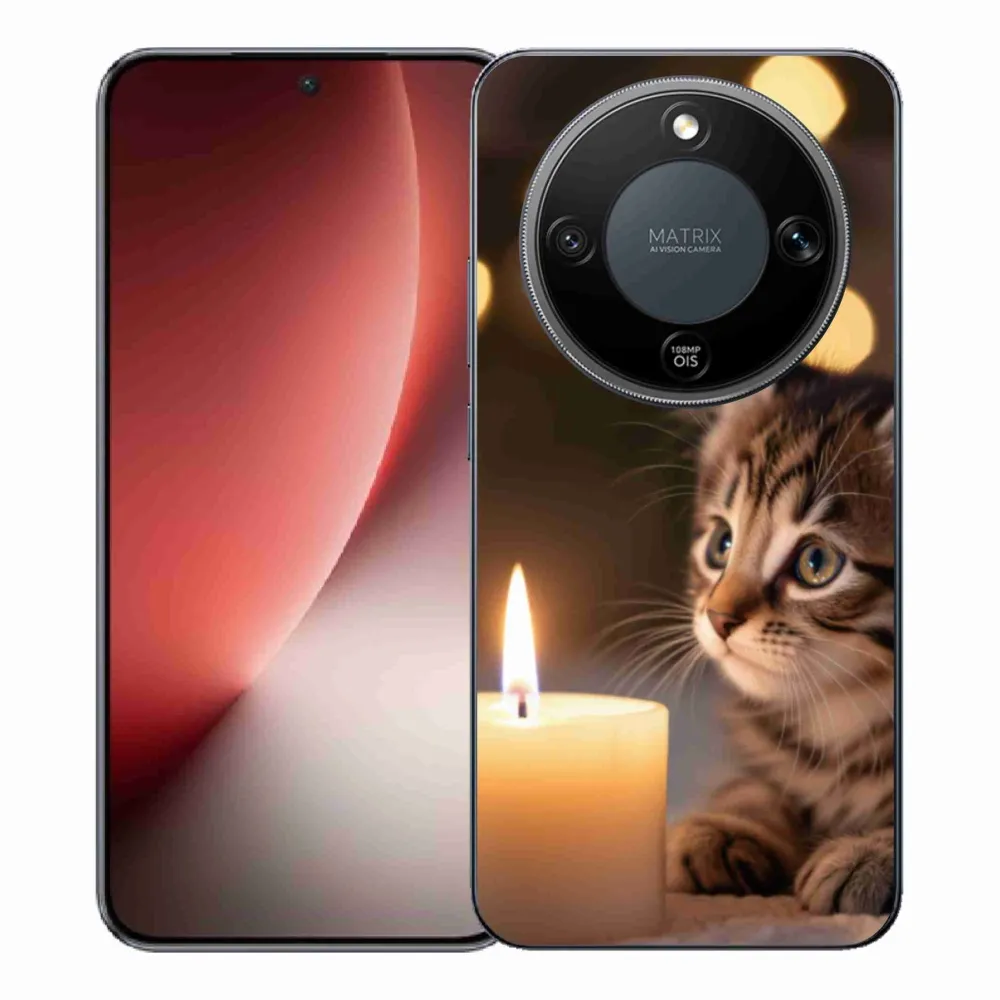 Rugalmas zselés tok mmCase a Honor Magic 8 Lite 5G képével - cica és gyertya