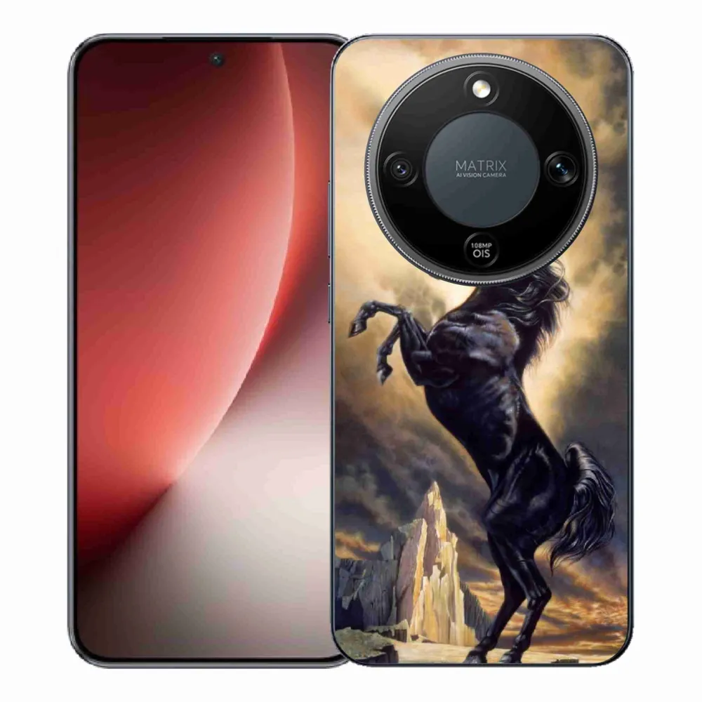 Rugalmas zselés tok mmCase a Honor Magic 8 Lite 5G képével - fekete rajzfilm ló