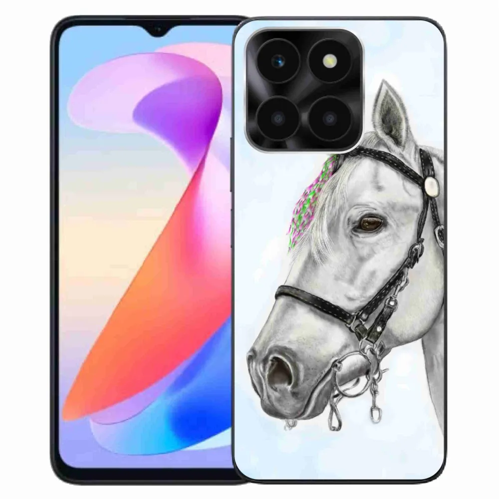 Rugalmas zselés tok mmCase képpel a Honor X6a számára - fehér ló 1