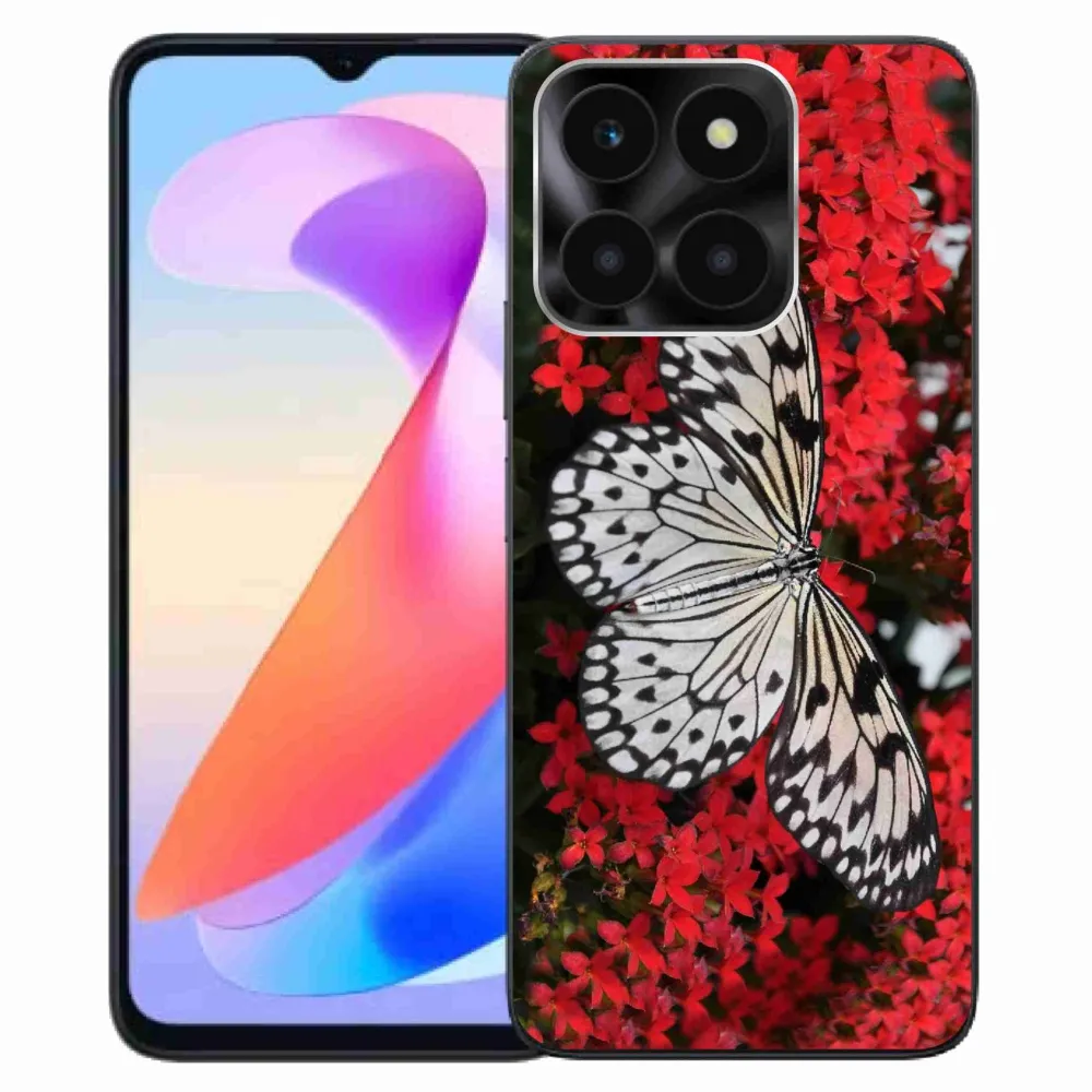 Rugalmas zselés tok mmCase a Honor X6a képével - fekete-fehér pillangó 1