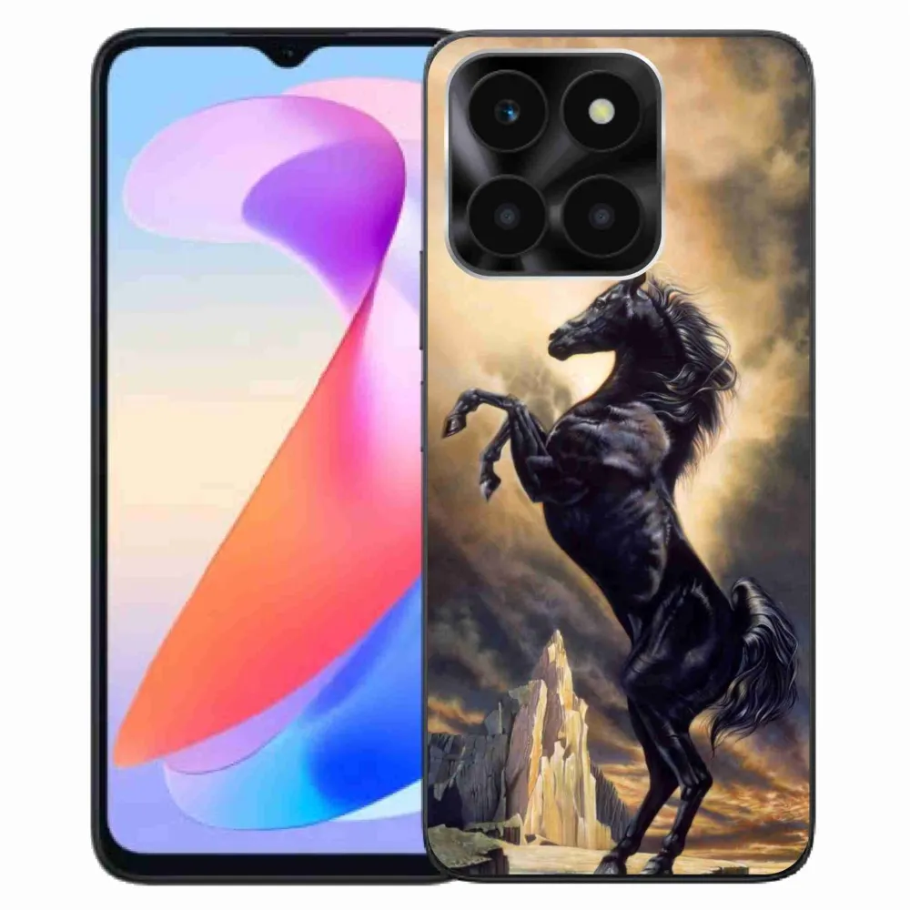 Rugalmas zselés tok mmCase képpel a Honor X6a számára - fekete rajzfilm ló