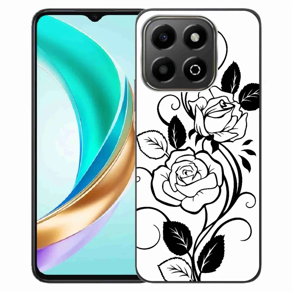 Rugalmas zselés tok mmCase képpel a Honor X6b számára - fekete és fehér rózsa