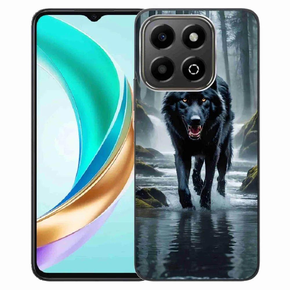 Rugalmas zselés tok mmCase képpel Honor X6b - fekete farkashoz