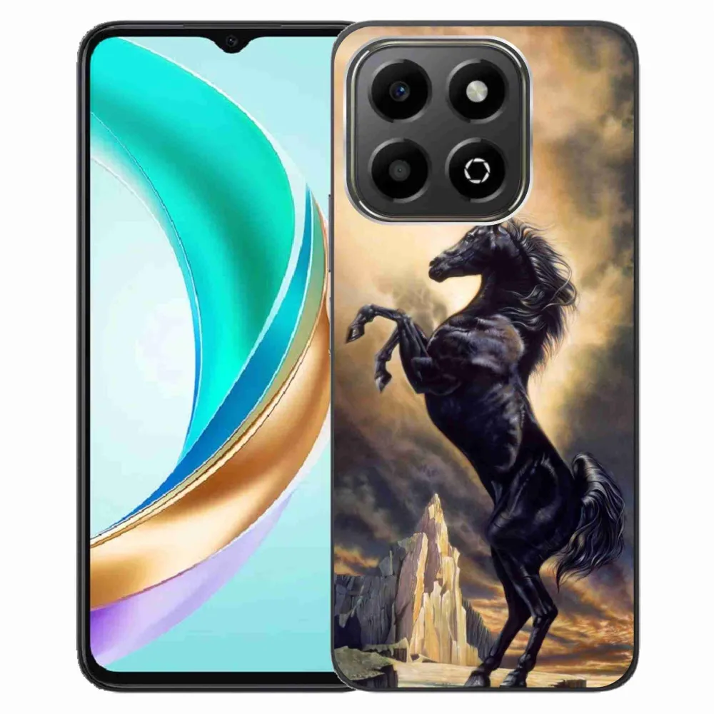 Rugalmas zselés tok mmCase képpel a Honor X6b számára - fekete rajzfilm ló