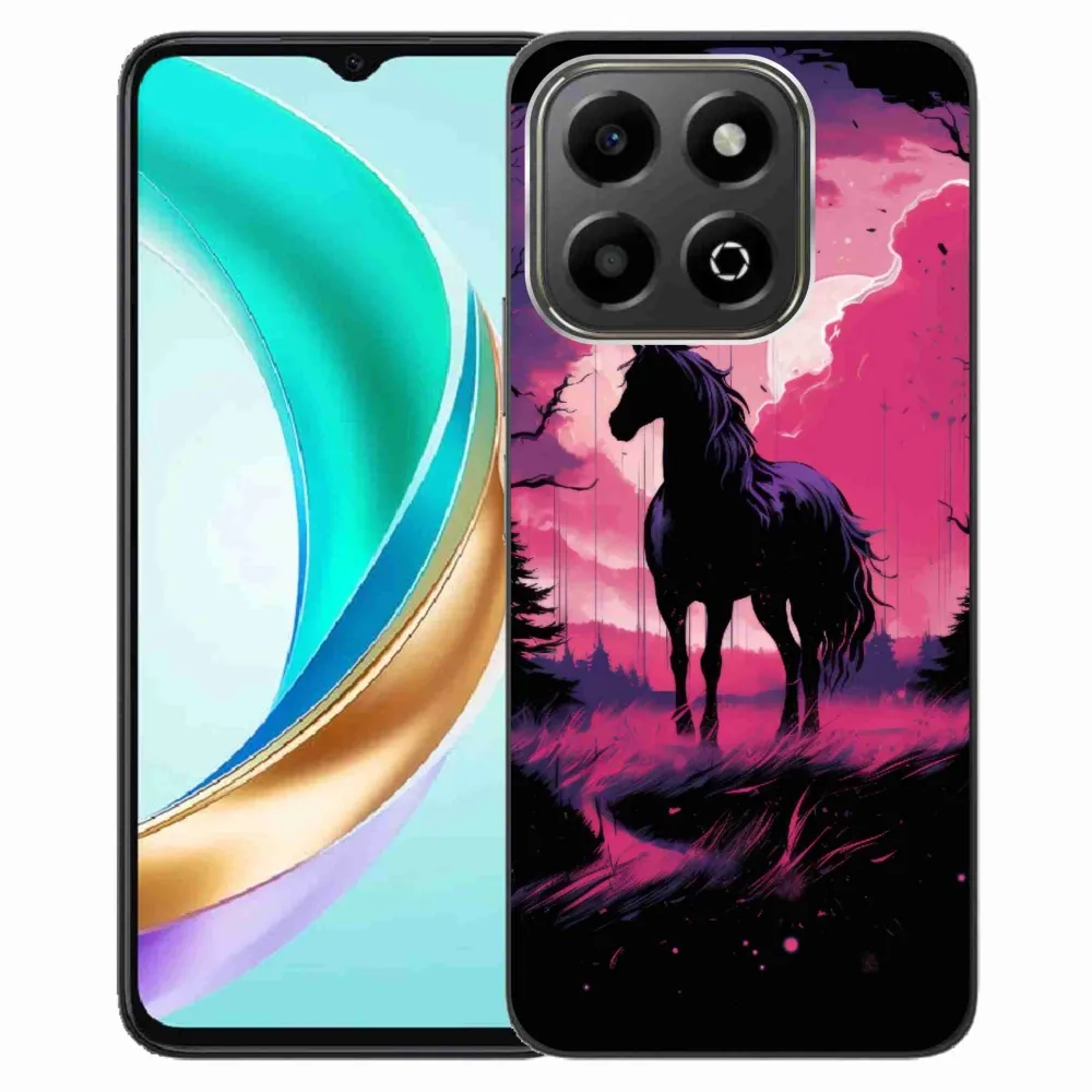 Rugalmas zselés tok mmCase képpel Honor X6b - fekete rajzfilm ló 1