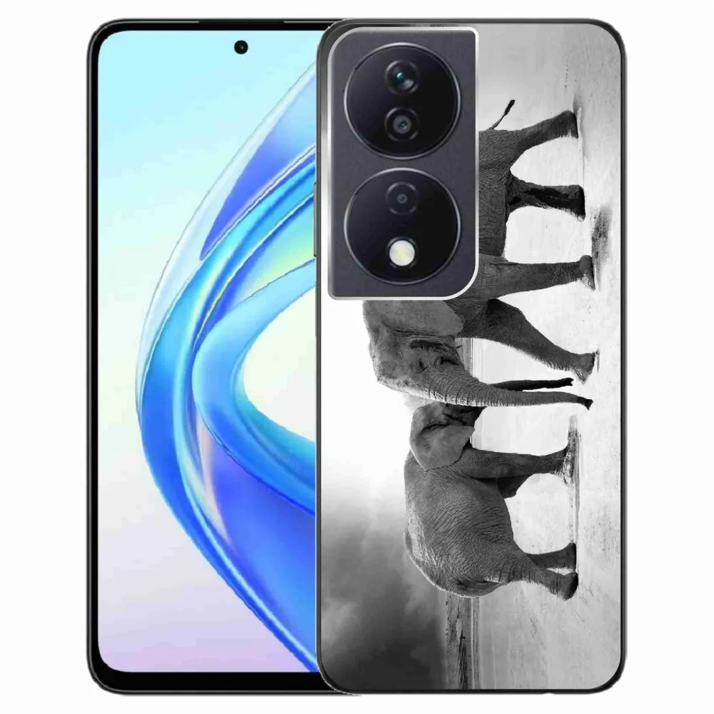 Rugalmas zselés tok mmCase képpel a Honor X7b/Honor 90 Smart számára - fekete és fehér elefántok