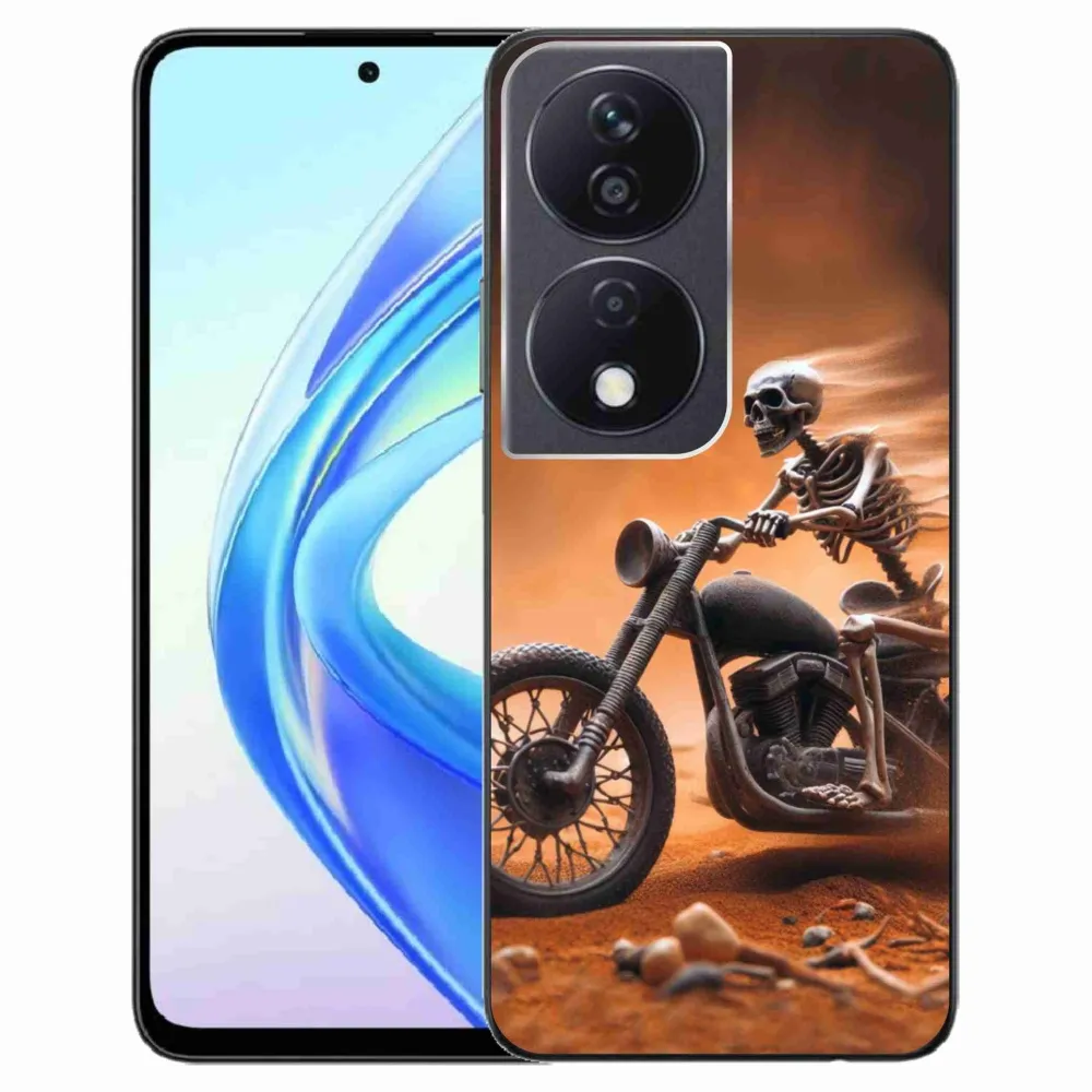 Rugalmas zselés tok mmCase képpel a Honor X7b/Honor 90 Smart számára - csontváz egy motorkerékpáron