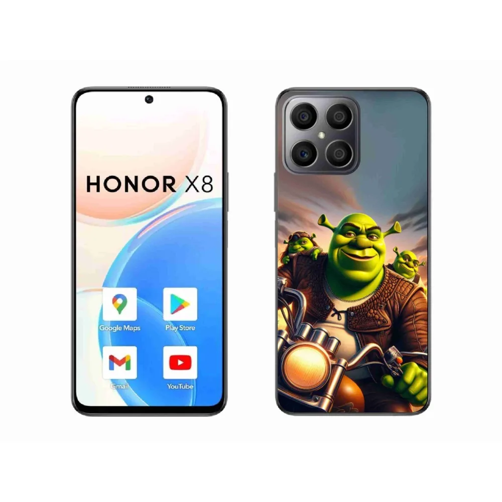 Rugalmas zselés tok mmCase a Honor X8 4G képével - Shrek egy motorkerékpárral