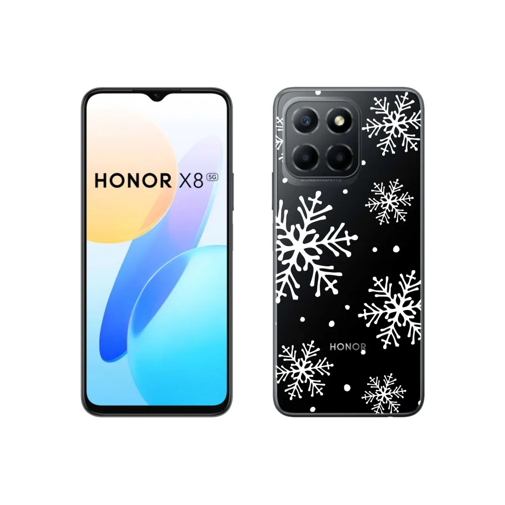 Rugalmas zselés tok mmCase motívummal a Honor X8 5G/70 Lite 5G számára - fehér hópelyhek átlátszó háttéren