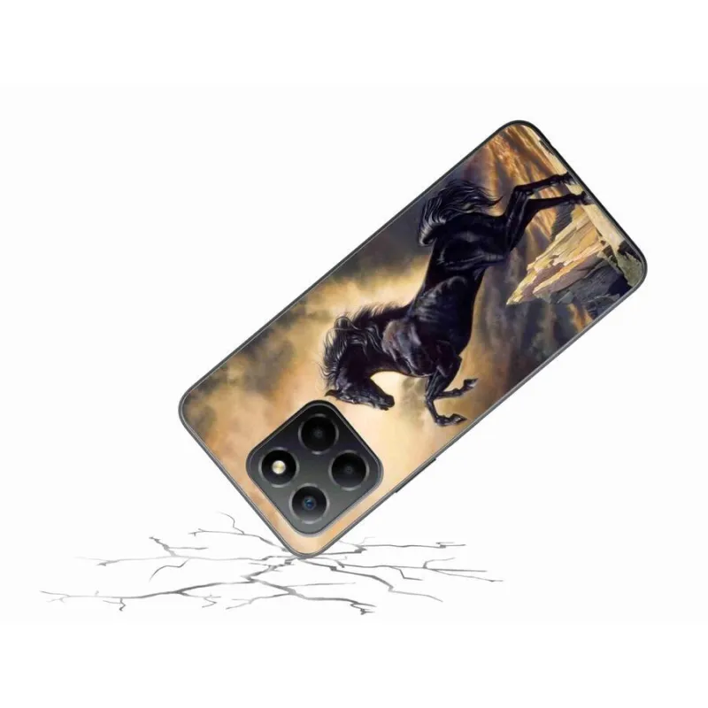 Zselés borítás mmCase a Honor X8 5G/Honor 70 Lite 5G számára - fekete rajzfilm ló