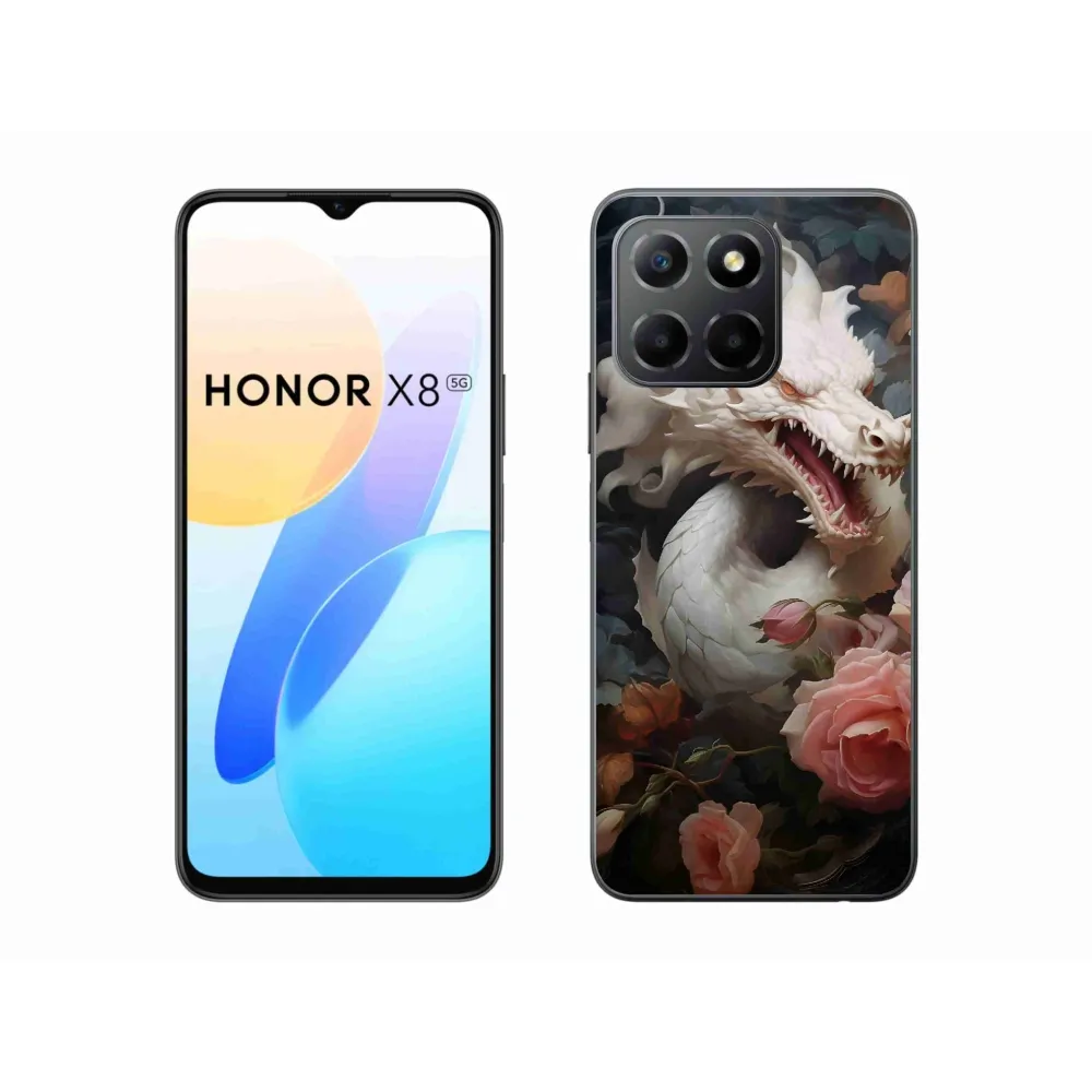 Rugalmas zselés tok mmCase képpel a Honor X8 5G-n - fehér sárkány