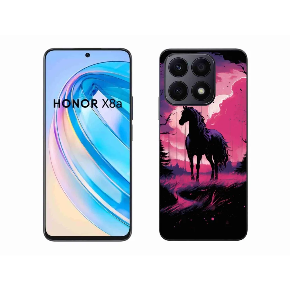 Rugalmas zselés tok mmCase képpel a Honor X8a számára - fekete rajzfilm ló 1