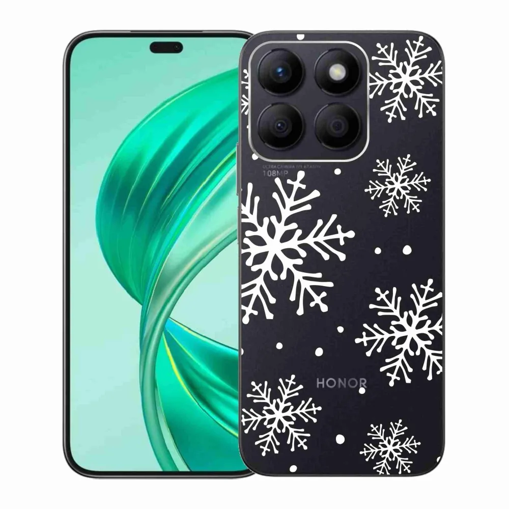 Rugalmas zselés tok mmCase képpel Honor X8b - fehér hópelyhek átlátszó háttérrel