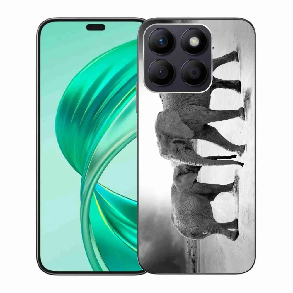 Rugalmas zselés tok mmCase a Honor X8b képével - fekete és fehér elefántok