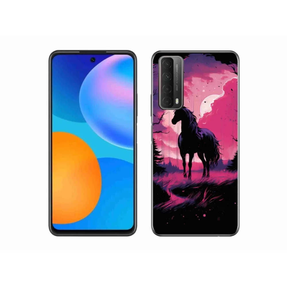 Rugalmas zselés tok mmCase a Huawei P Smart (2021) képével - fekete rajzfilm ló 1