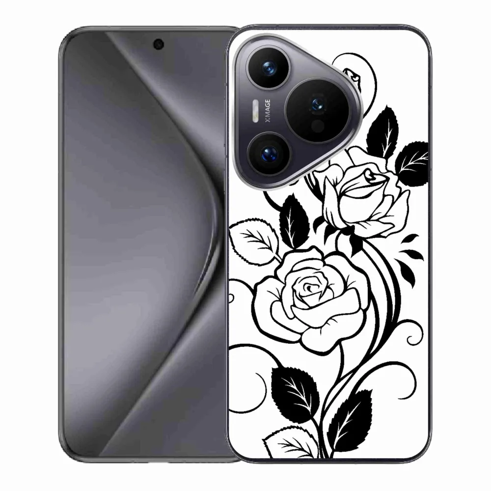 Rugalmas zselés tok mmCase a Huawei Pura 70 képével - fekete-fehér rózsa