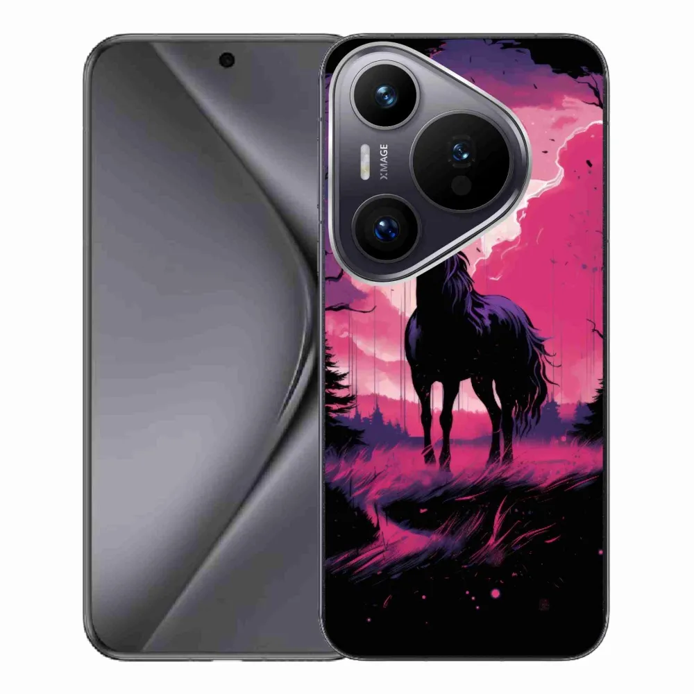Rugalmas zselés tok mmCase a Huawei Pura 70 Pro képével - fekete rajzfilm ló 1