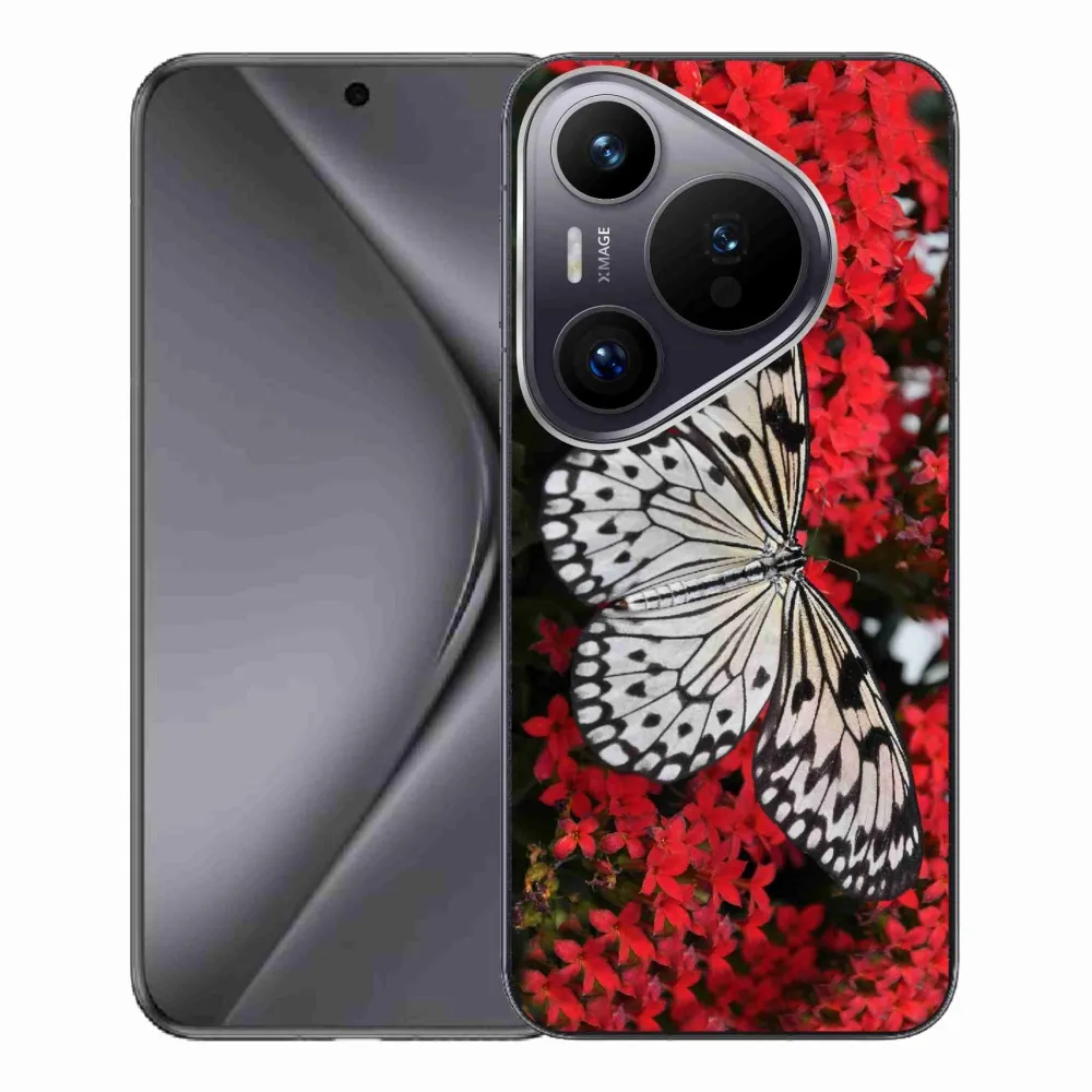 Rugalmas zselés tok mmCase a Huawei Pura 70 Pro képével - fekete-fehér pillangó 1