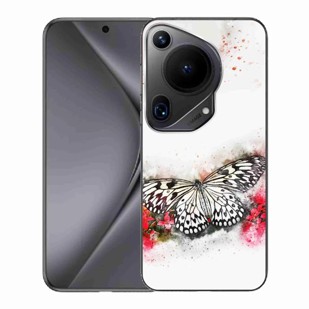 Rugalmas zselés tok mmCase a Huawei Pura 70 Ultra képével - fekete-fehér pillangó