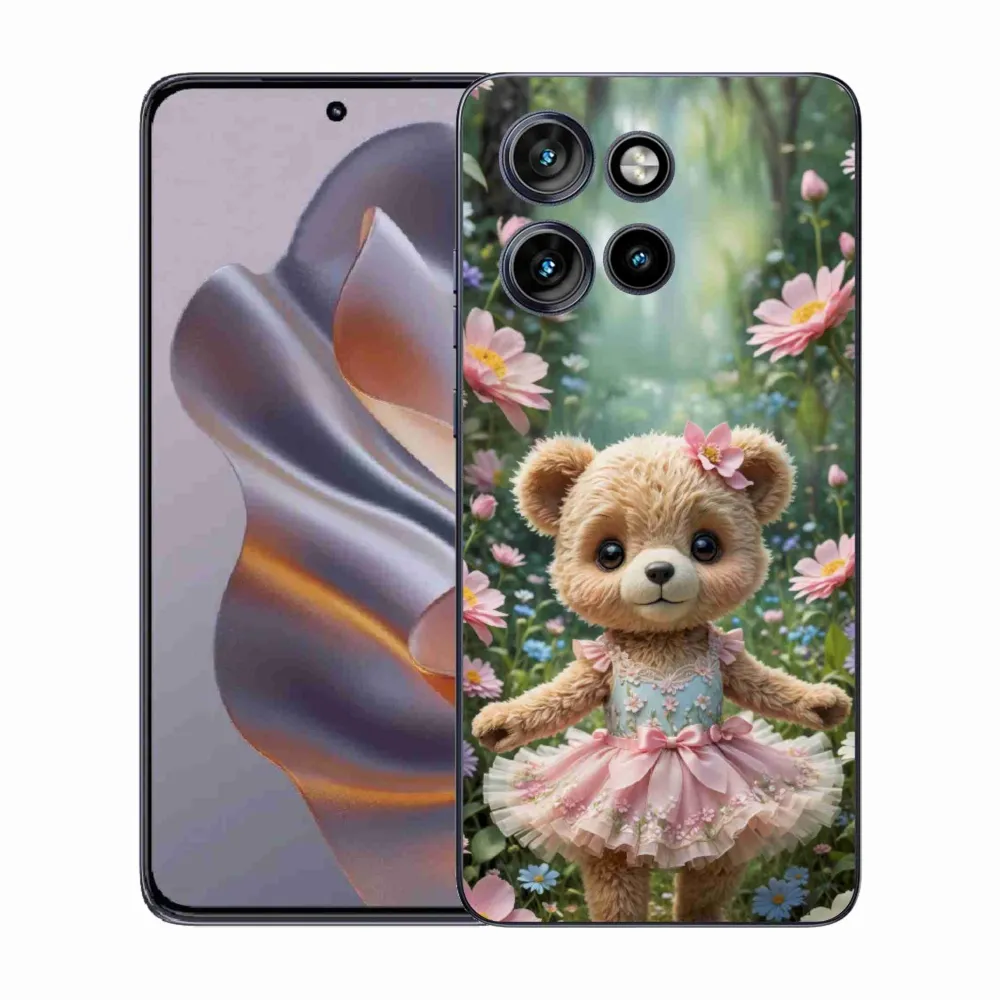 Zselés borítás mmCase a Motorola Edge 50 Neo készülékhez - aranyos virágos mackó