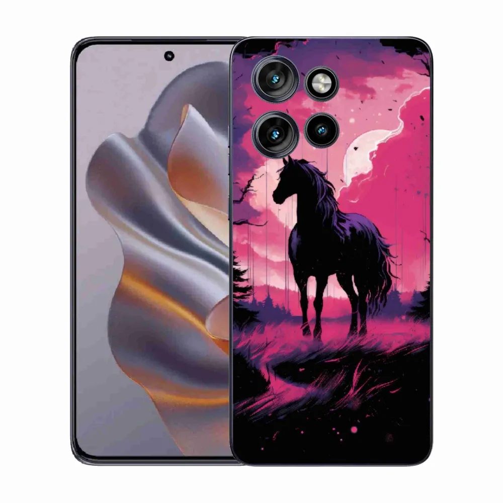 Rugalmas zselés tok mmCase képpel Motorola Edge 50 Neo - fekete rajzfilm ló 1