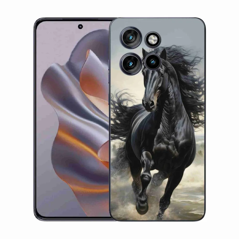 Rugalmas zselés tok mmCase képpel a Motorola Edge 50 Neo - futó fekete ló - Motorola Edge 50 Neo számára