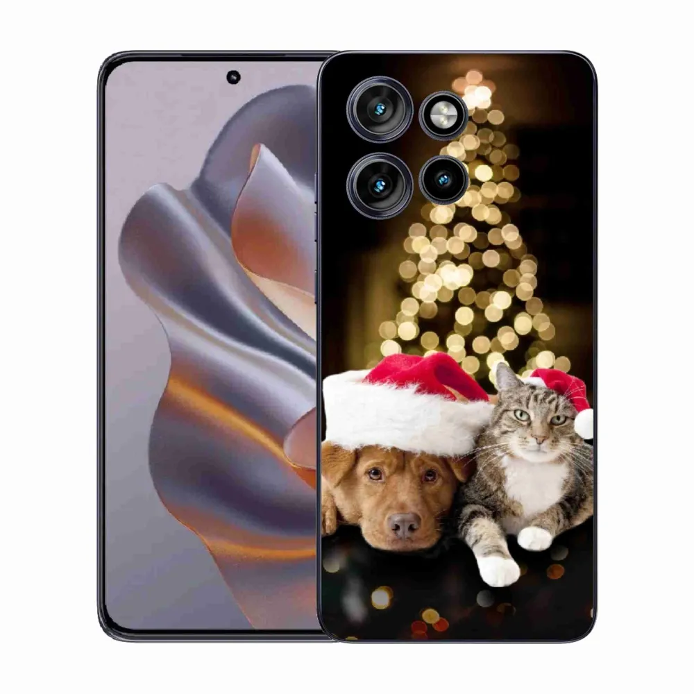 Rugalmas zselés tok mmCase képpel Motorola Edge 50 Neo - karácsonyi kutya és macska - képhez