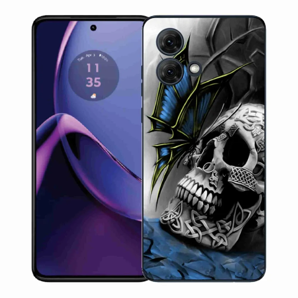 Zselés borítás mmCase a Motorola Moto G84 5G-hez - pillangó és koponya