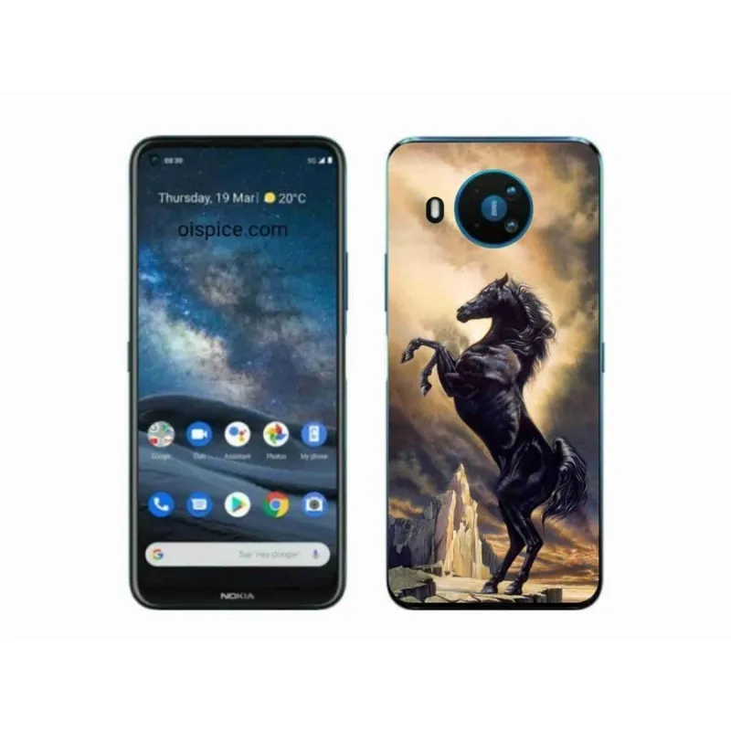 Zselés borítás mmCase a Nokia 8.3 5G készülékhez - fekete rajzfilm ló