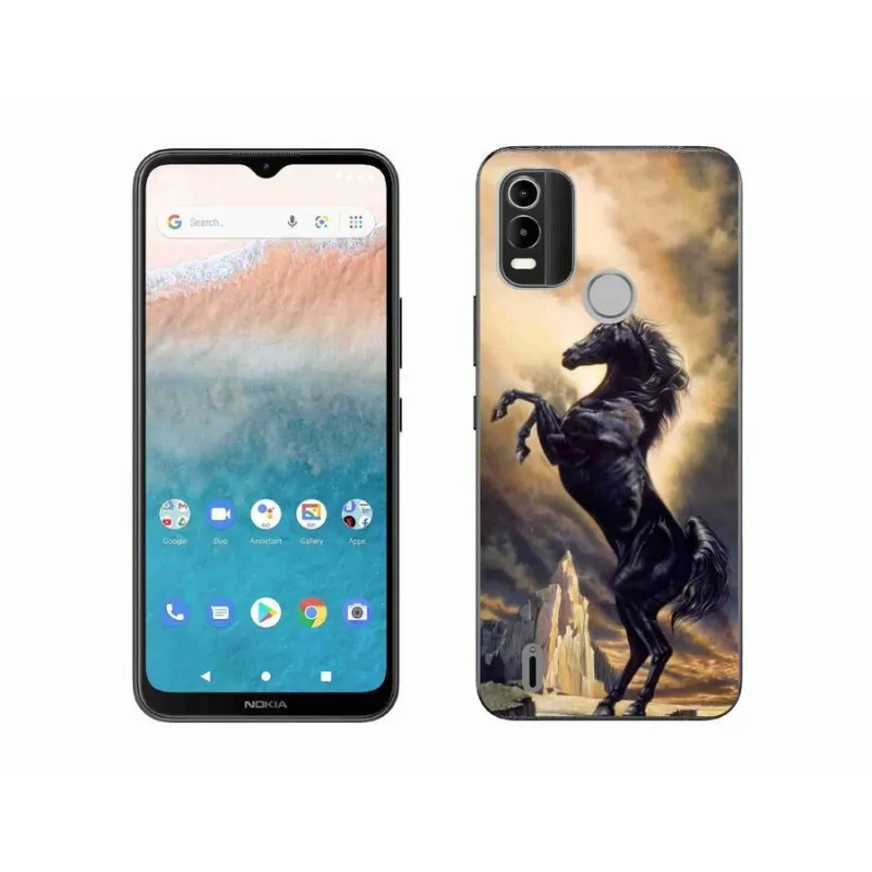 Zselés borítás mmCase a Nokia C21 Plus készülékhez - fekete rajzfilm ló